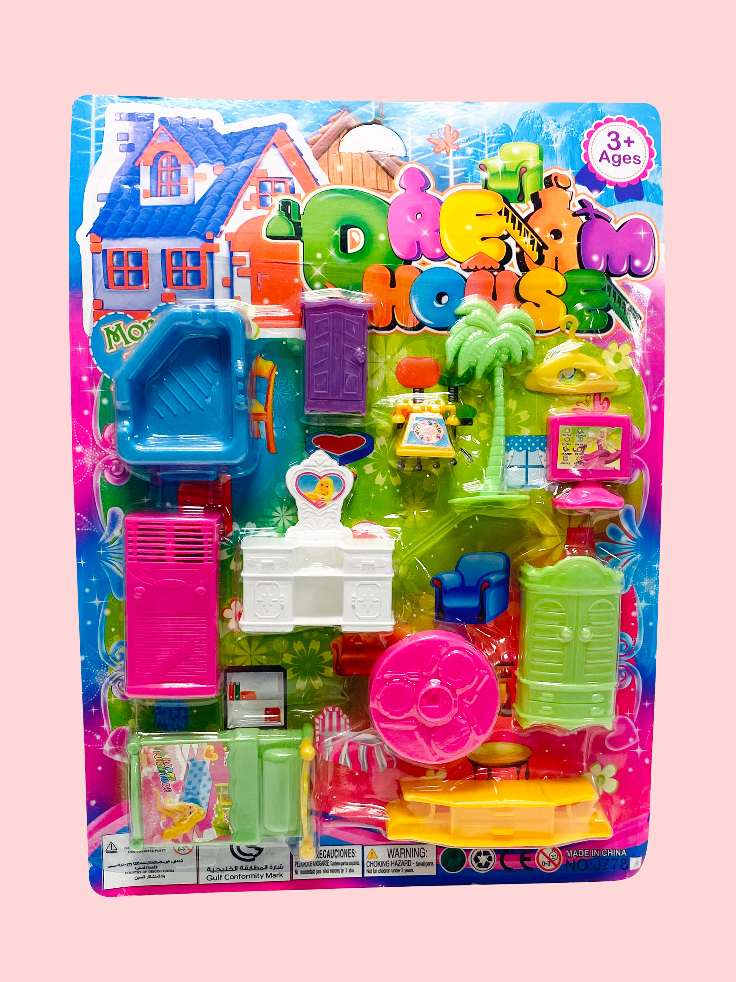 KIT DE ACCESORIOS PARA CASTILLOS O CASAS DE MUÑECAS, MATERIAL PLÁSTICO EN BLISTER, COLORES SURTIDOS