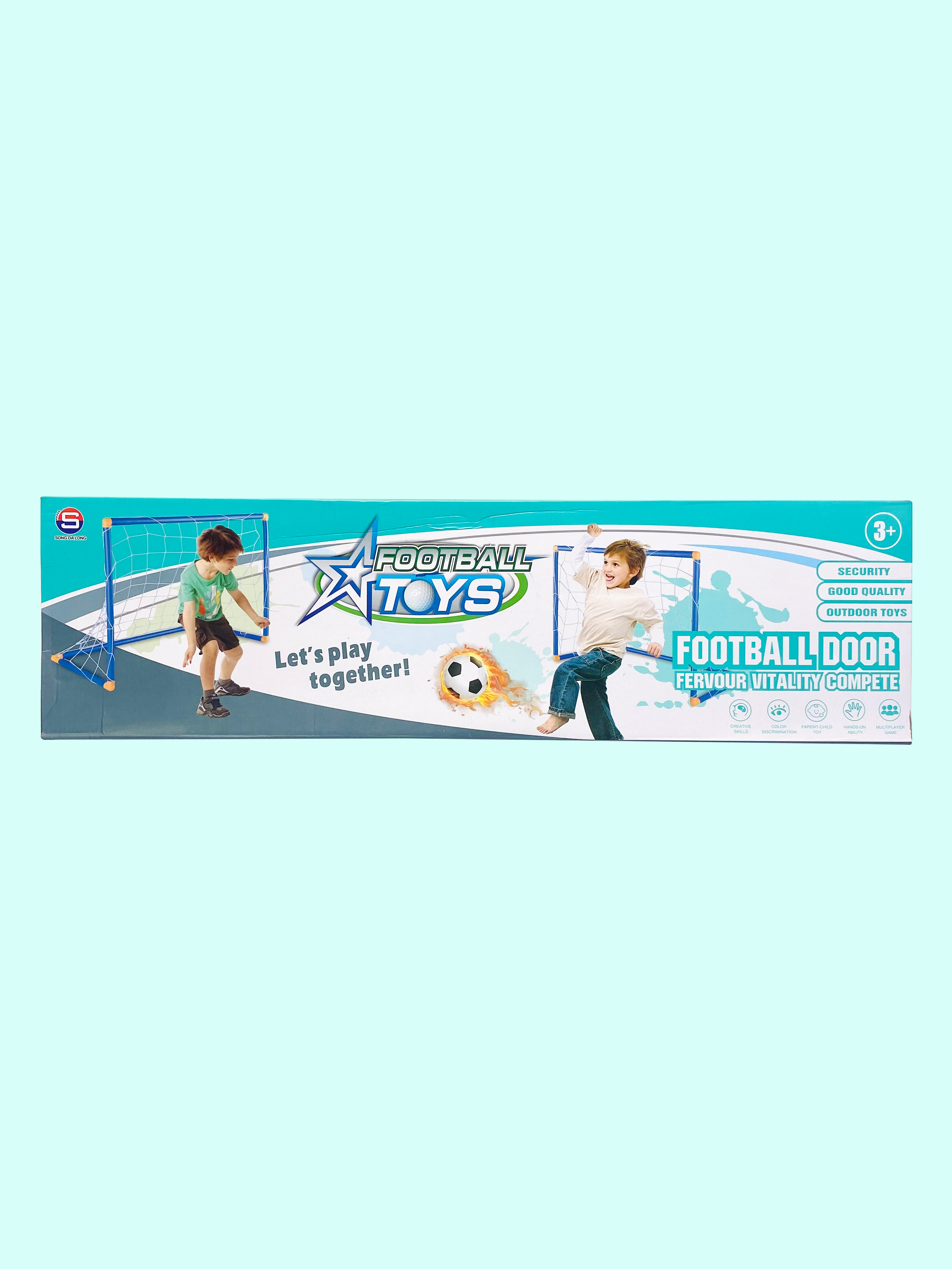 CANCHA DE FUTBOL 2 EN 1 ( PELOTA,INFLADOR, MALLA) MATERIAL PLÁSTICO