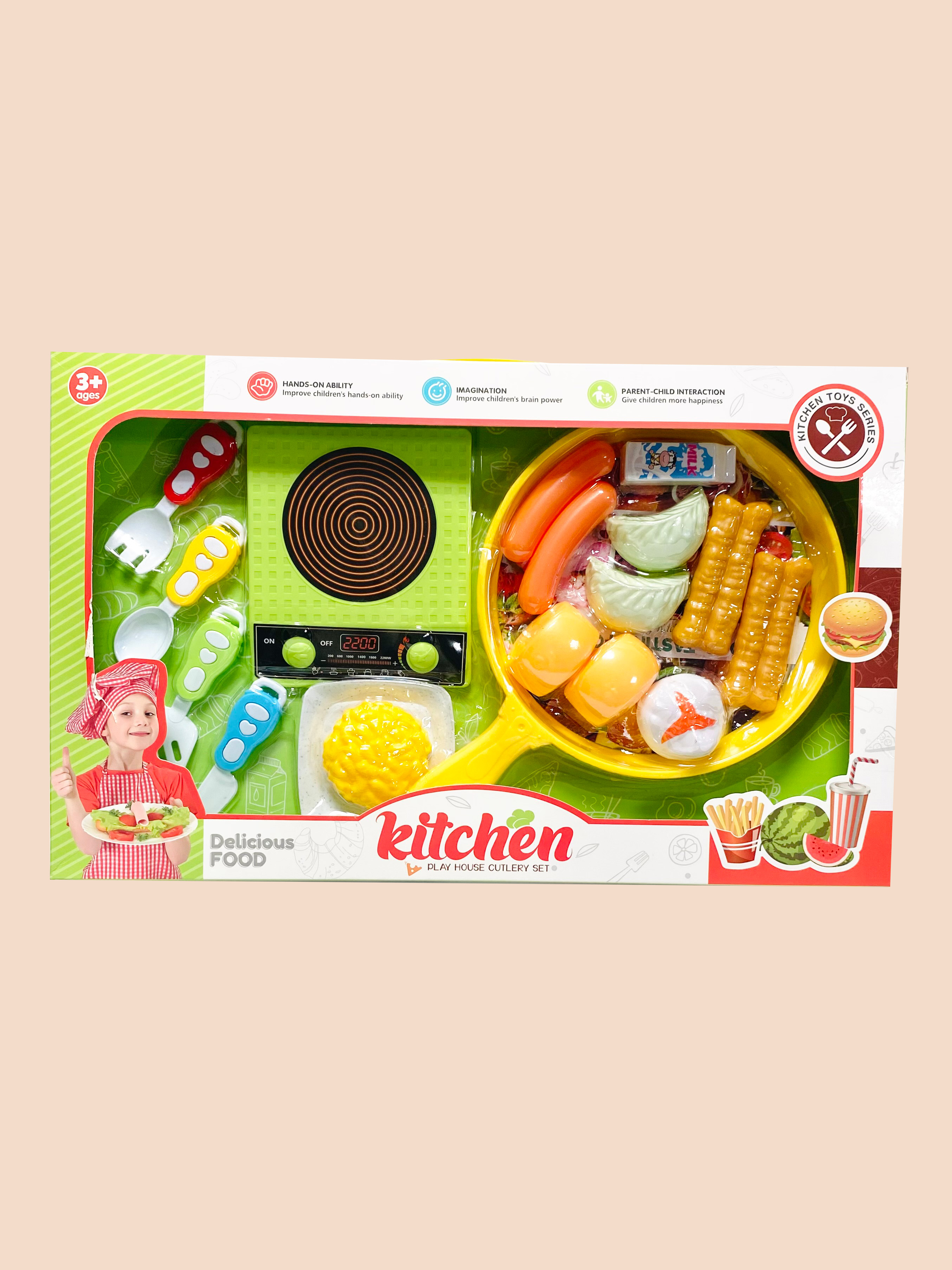 KIT ACCESORIOS DE COCINA Y COMIDA, MATERIAL PLÁSTICO EN CAJA