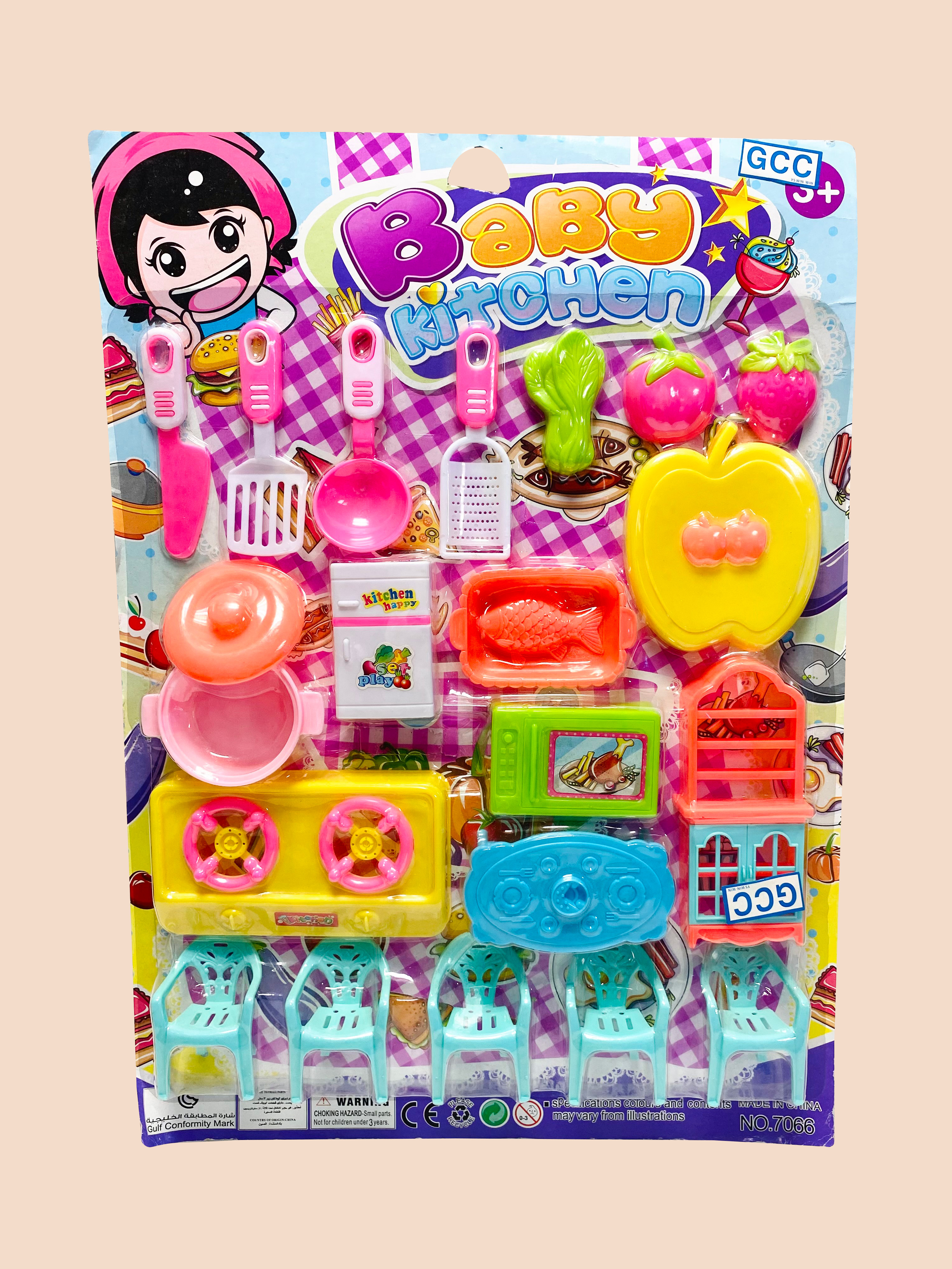 KIT COCINA Y ACCESORIOS, MATERIAL PLÁSTICO EN BLISTER, COLORES SURTIDOS