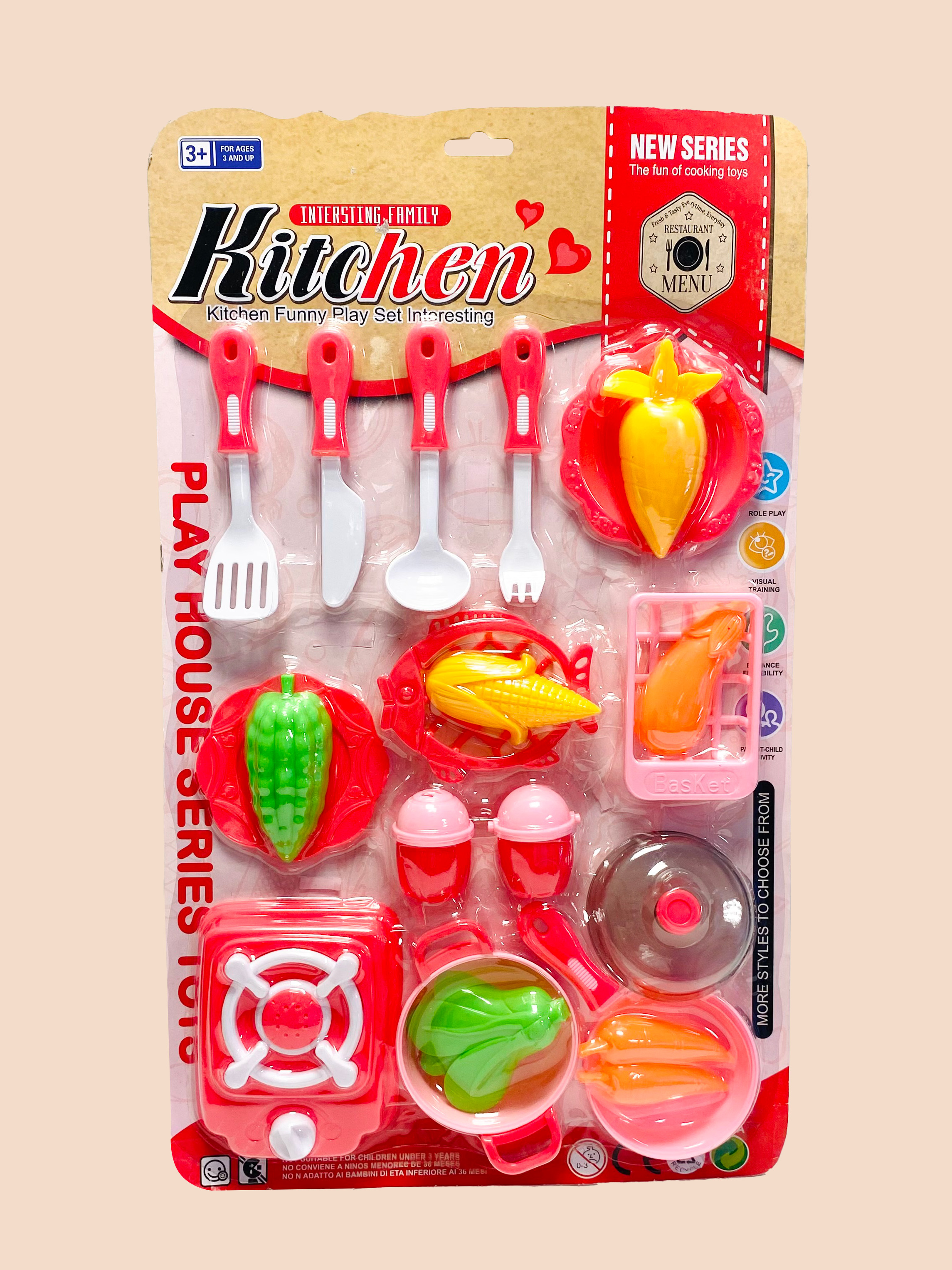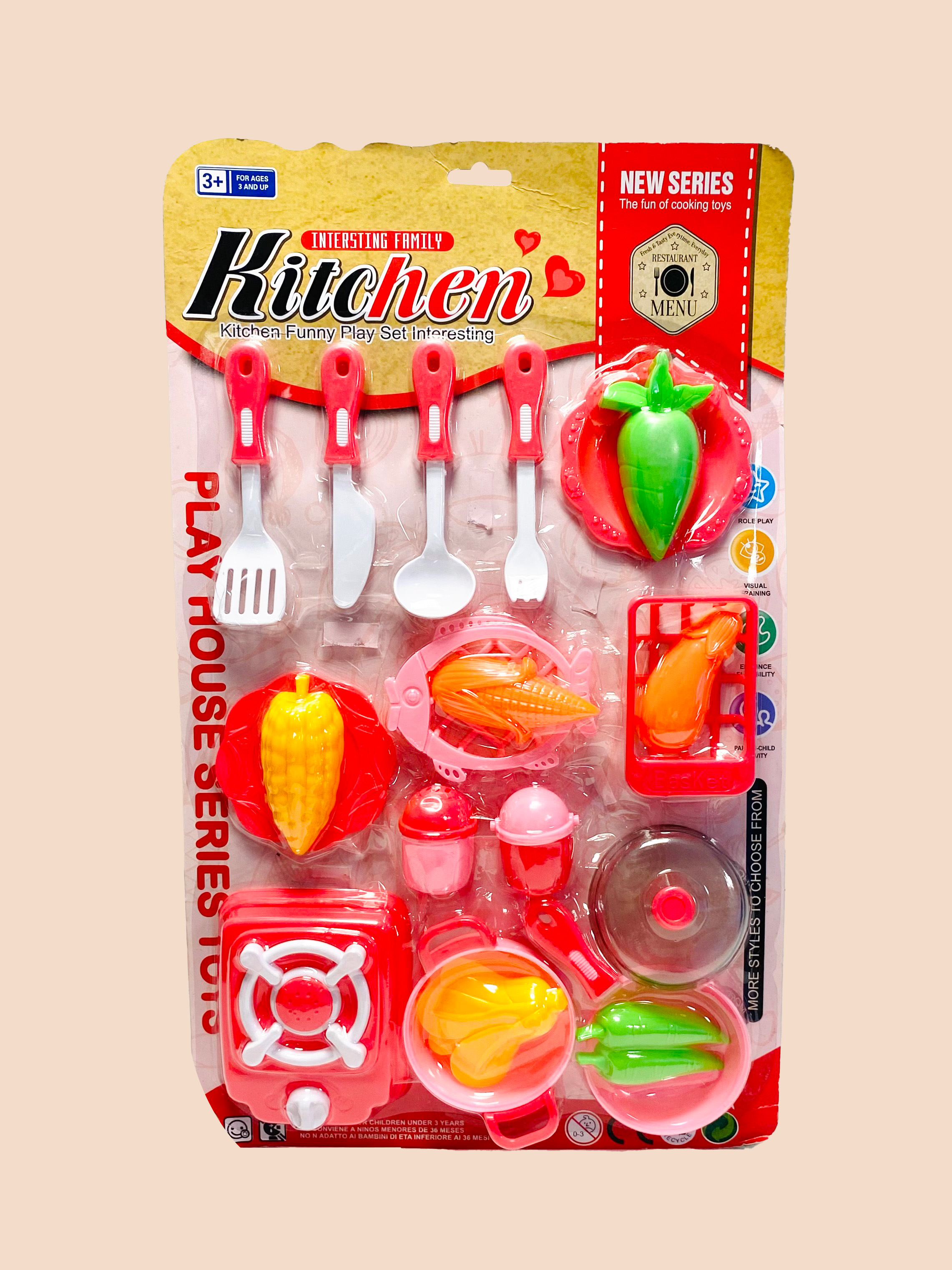 KIT ACCESORIOS DE COCINA Y COMIDA, MATERIAL PLÁSTICO EN BLISTER, COLORES SURTIDOS