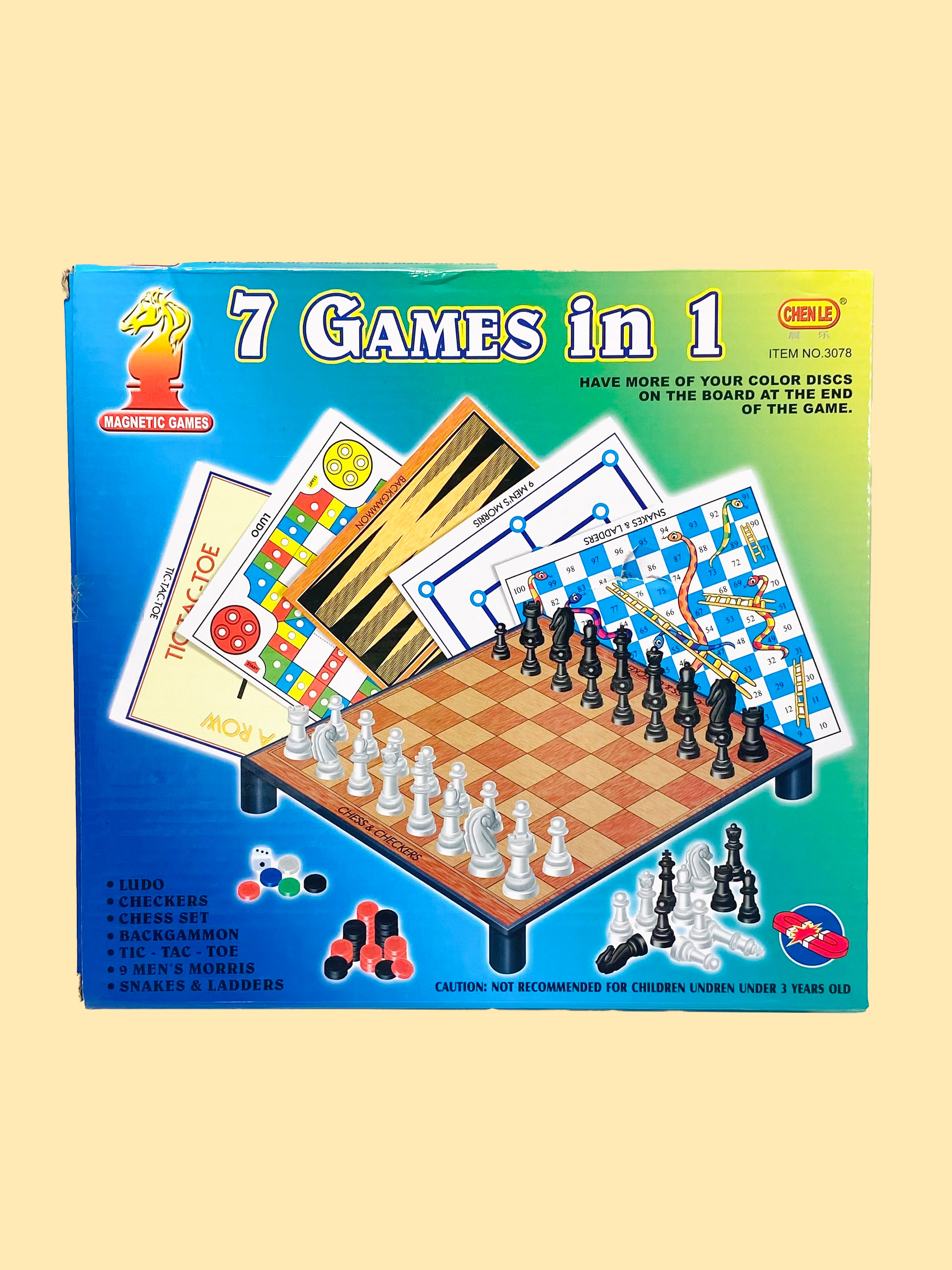 7 JUEGOS DE MESA EN 1, PARA DIVERTIRSE EN FAMILIA, EN MATERIAL PLÁSTICO EN CAJA