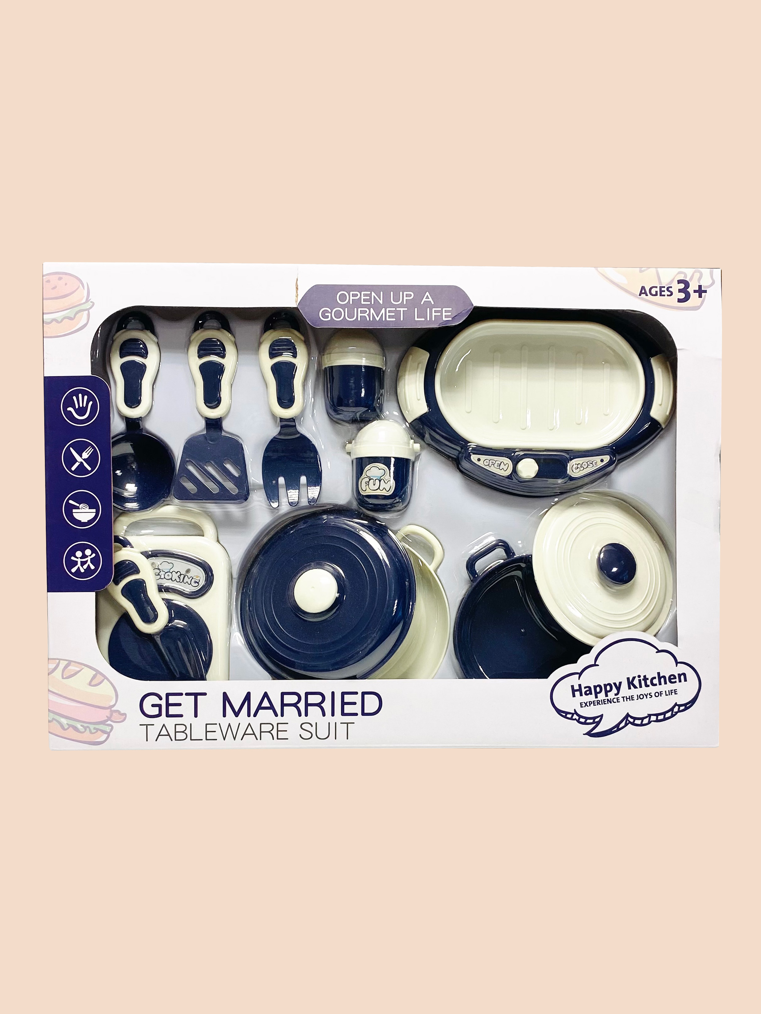 SET DE OLLAS Y UTENCILIOS DE COCINA, MATERIAL PLÁSTICO EN CAJA